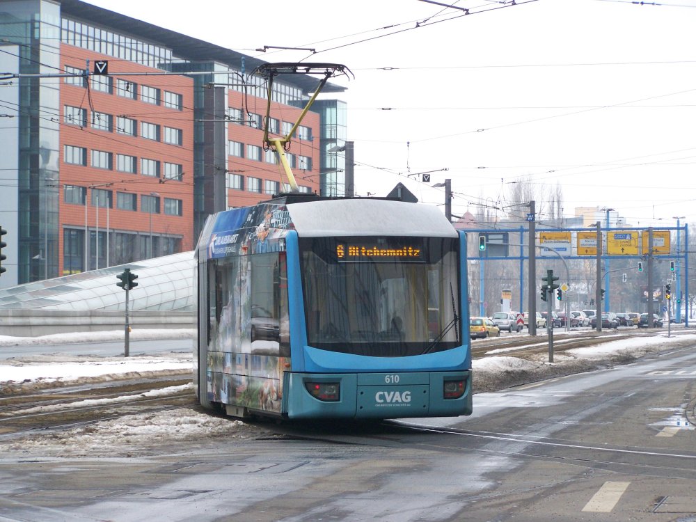 Der Prototyp von ABB der Variobahn Einrichtungsvariante (6NGTLDE) war 1993 die erste Niederflurbahn in Chemnitz. 1999 wurden noch 13 Serienwagen von Adtranz gebaut.