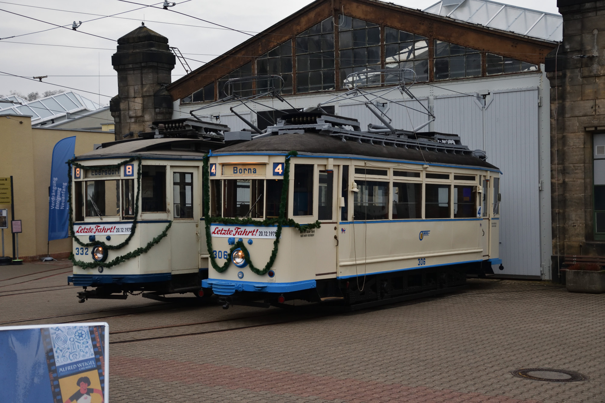 332 als Linie 8 und 306 als Linie 4 vor dem Straßenbahnmuseum