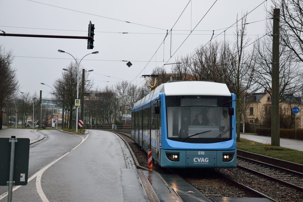 610 fährt in Richtung Hauptbahnhof zwischen Irkutsker Straße und Haydnstraße