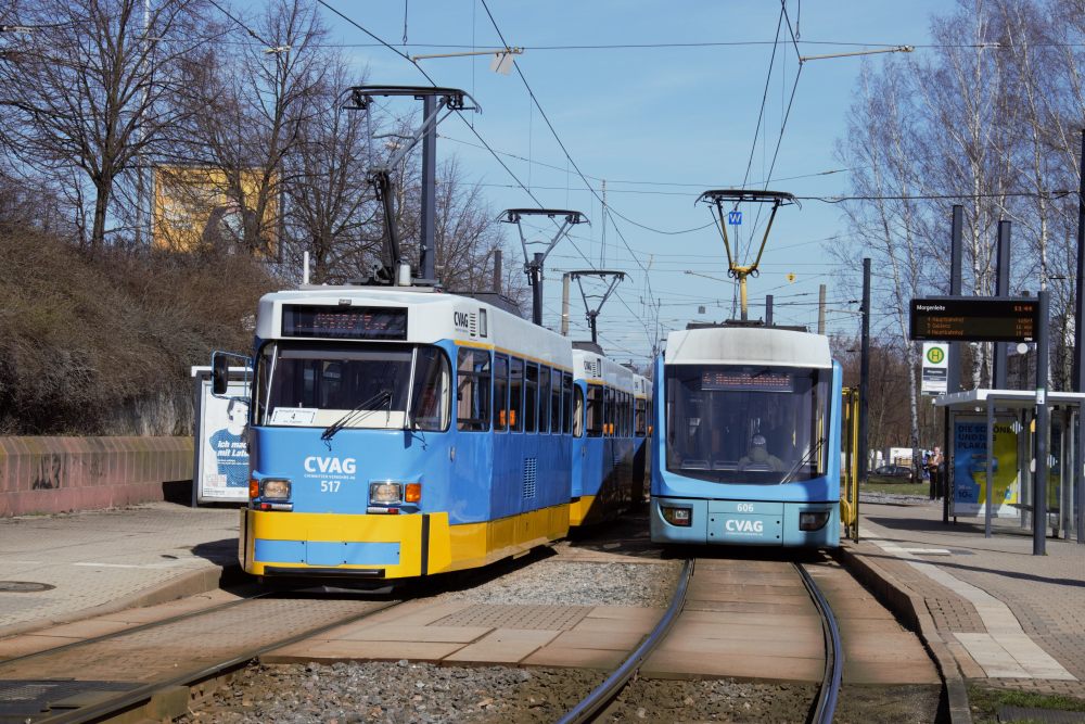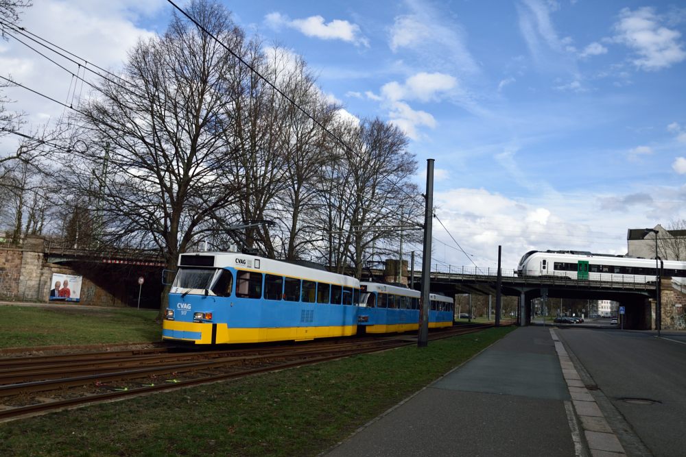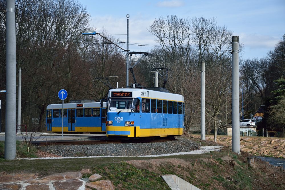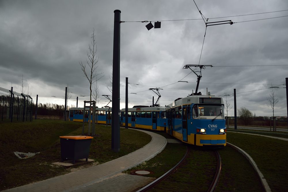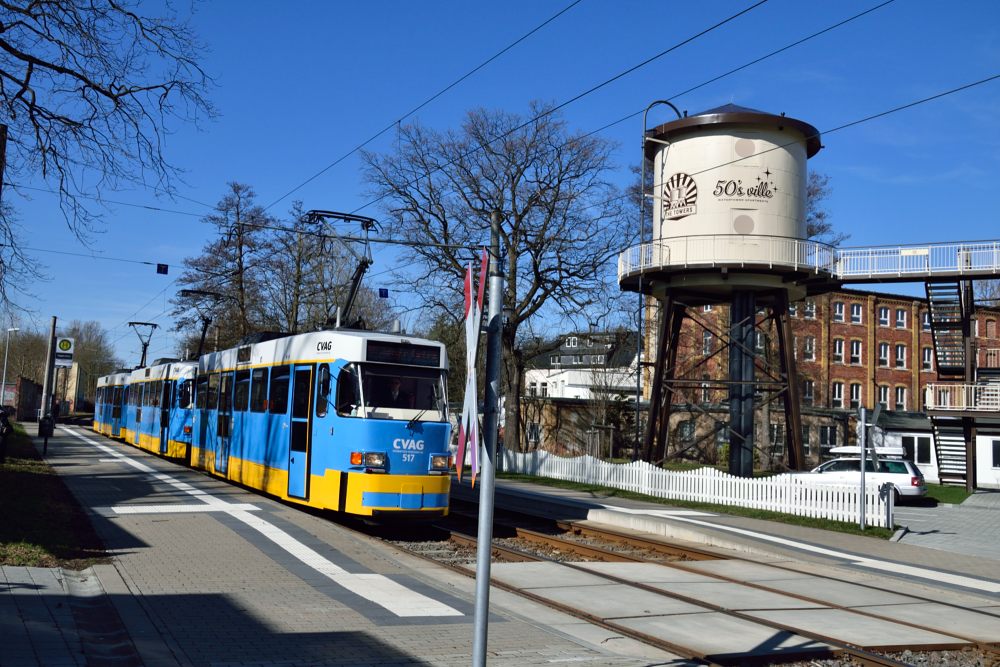 Die Dreifachtraktion an der Haltestelle Kappler Drehe