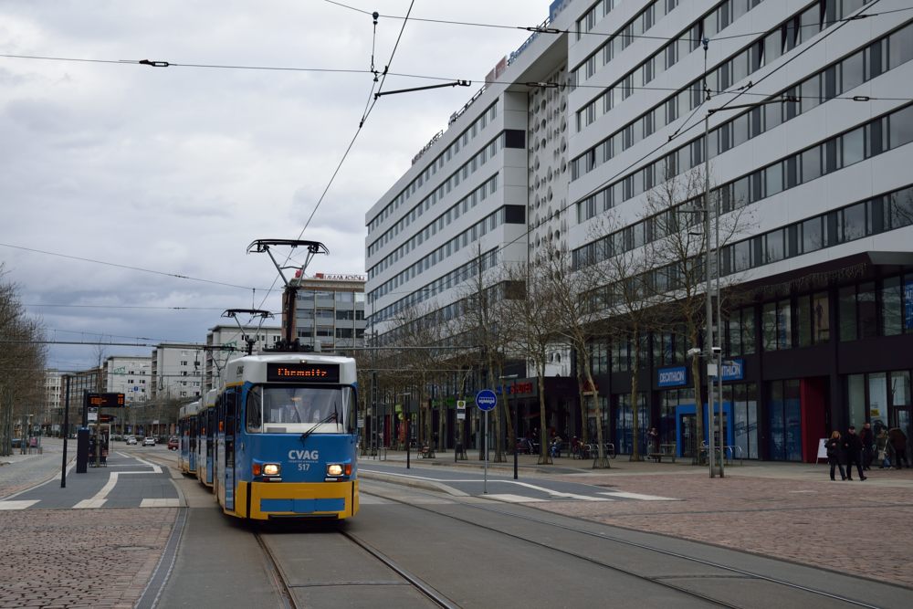 Anschließend ging es über die Innenstadt und Krekelstraße nach Altchemnitz. Danach fuhren wir über Roter Turm, Geibelstraße in den Betriebshof Adelsberg.