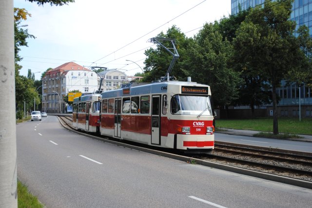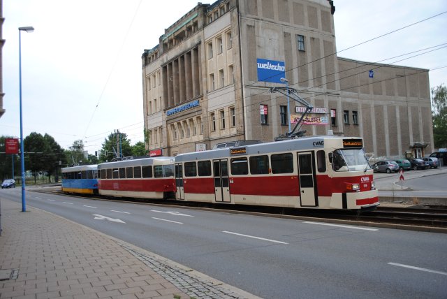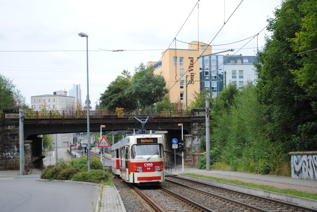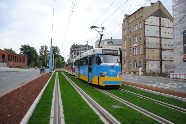 Anschließend ging es noch immer mit 509 vorann zur Annenstraße. Da war allerdings die Weiche nicht wie geplant gestellt so das es erstmal über die Reitbahnstraße, Zentralhaltestelle Bahnsteig R, Moritzhof nochmals zur Annenstraße ging. Nun war die Weiche richtig in Richtung Bernsdorf gestellt und so fuhren wir dort hin.