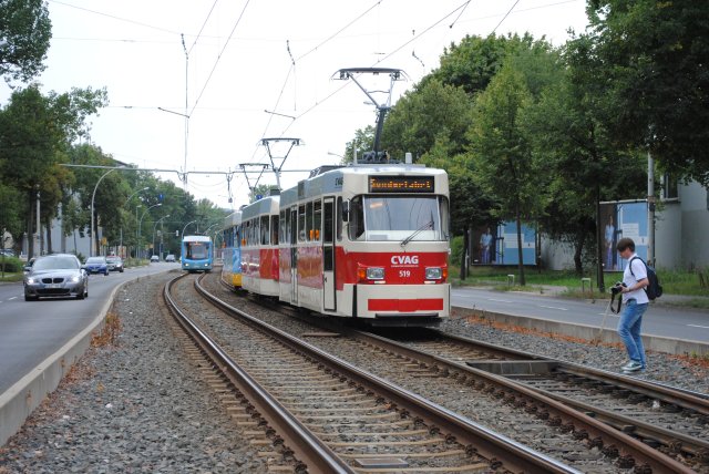 Am 02.09.2012 veranstalltete der Verein des Straßenbahnmuseums Chemnitz in Zusammenarbeit mit der CVAG eine Sechsstündige Fotosonderfahrt mit der T3dm Traktion 509-519. Die Fahrzeuge wurden hierbei teilweise als "normale Traktion" und teilweise auch als "Heck-an-Heck-Traktion" eingesetzt wobei jeder Wagen mal vorn war. Der Höhepunkt war als gegen Ende der Betriebshof Adelsberg angefahren wurde wo die Abstellhalle besichtigt werden konnte und die in diesem Moment "Heck-an-Heck-Traktion" um einen 3. Treibwagen (517) erweitert wurde und dann so mit einem Kleinen Zwischenabstecher auf die Annaberger Straße nach Kappel gefahren wurde.
